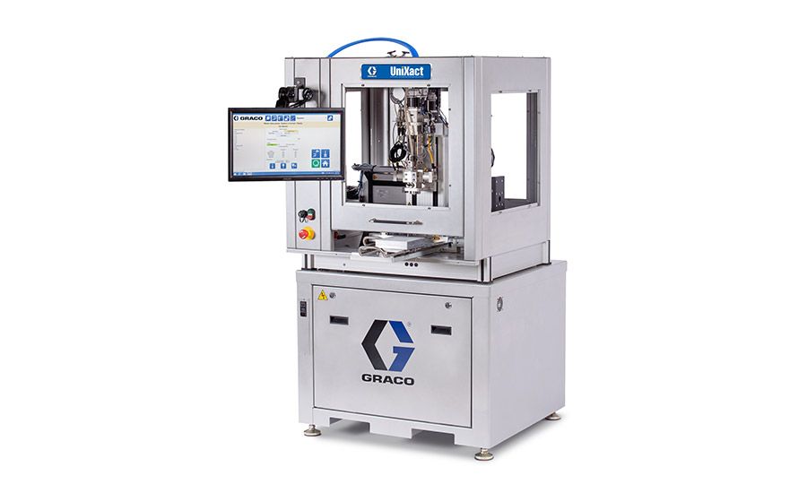 The Graco UniXact is a fully automated precision dispense solution that reportedly combines Graco dispense expertise with Cartesian XYZ motion. UniXact include technologies for mass production and the ability to support large scale operations. It offers a single source for motion, fluid dispense, and process monitoring that can provide process security and lowers the risk of product defects due to human error.