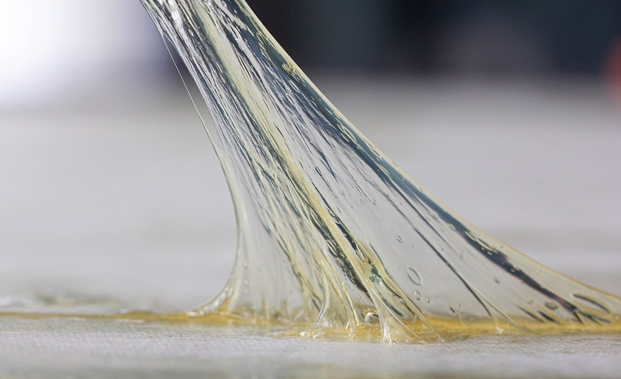 A crosslinked material designed with reversibility in mind, this adhesive exhibits the strength of traditionally cured adhesives with the added benefit of transitioning to a flowable material after heating. (Photo courtesy of Conagen.)