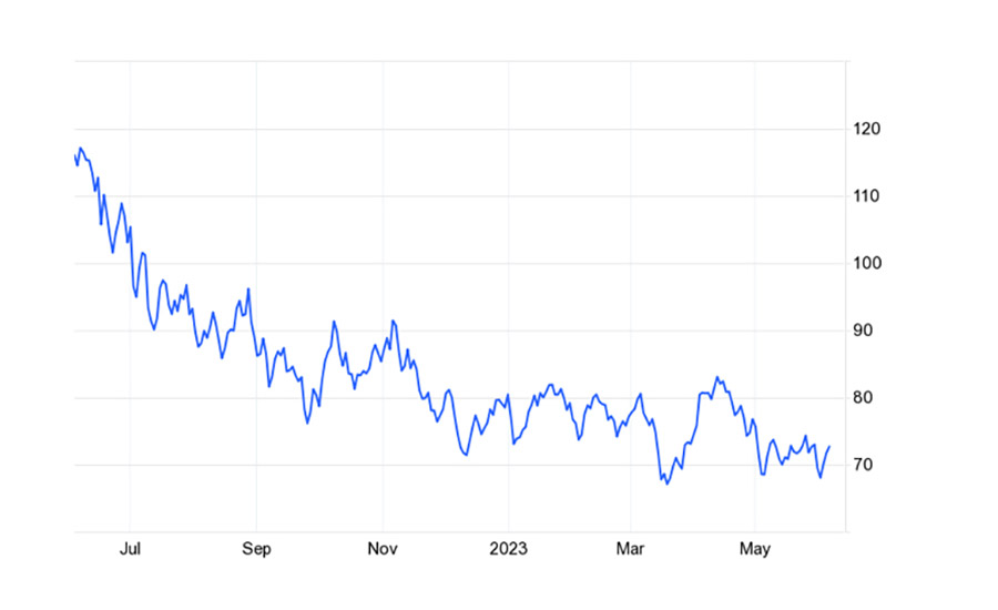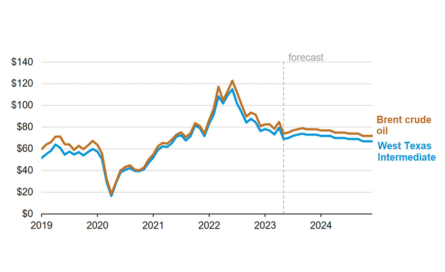 Adhesives and sealants producers are sensitive to crude oil prices due to the preponderance of oil-derived feedstocks. The U.S. Energy Information Administration (EIA) has revised its crude oil price forecast for the rest of 2023 and 2024 due to a significant decline in prices since April.