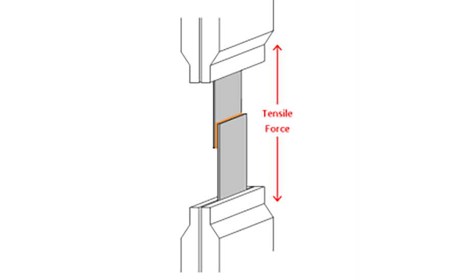 Tensile Shear Adhesion or lap shear adhesion is used to determine the adhesive strength of a material when bonded between two ridged metallic substrates.