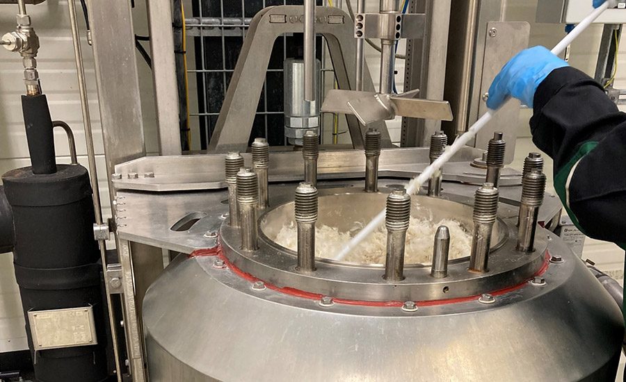 The process was scaled up at Fraunhofer CBP, where several kilograms of chicken feathers were processed. © Fraunhofer IGB