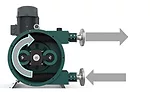 Rollers compress and relax the hose, creating a self-priming, no-slip flow that guides the product seamlessly through the pump to discharge.
