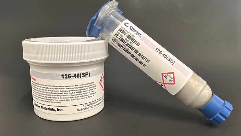 Applications for 126-40(SD) and 126-40(SP) include touch-screen bus bars, LCD displays, flexible solar cell grid lines, Emi/RFI shielding of polyimide flexible circuits, polymer thick film circuitry, membrane switches, die attach, stacked die, lead and electric components attach.