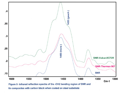 Based on our analysis of the infrared results, our discussions will first center on the structure of the natural rubber when coated on the metallic surface. Then we will discuss the structural changes as different grades of carbon black are milled into the rubber. The task is made easier by analyzing well-assigned infrared vibrations, which are localized in nature with well-defined transition moments.