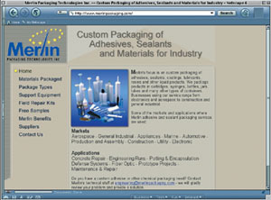 This company's Web site features the many different ways Merlin can package one- or two-component adhesives, sealants and resins. We fill dual cartridges, syringes, collapsible tubes, barrier and injection kits, bottles, cans, and even mixed frozen. We service the marine, aerospace, automotive, electronic and general-industrial markets. For more information, please call toll-free 888-648-7878.