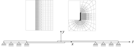 The commercial FE code MSC.Marc is used. Figures 1-2 show the sample models with the definition of coordinates, boundary conditions and applied loads, as well as mesh details for both single-lap joints with thick and thin adherends, respectively. With a glue length of 12 mm and specimen width of 25 mm, the glue surface area amounts to 300 mm2. The thickness of the adhesive layer (bond gap) equals 30 µm, which is typical of anaerobic products. The essential difference between both types of test joints is the substrate thickness: 12 mm (thick adherends) and 1.6 mm (thin adherends).