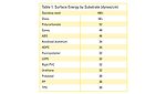 TPOs are considered low-surface-energy materials; this means that, generally speaking, pressure-sensitive materials have a lower affinity for this surface than stainless steel or glass (see Table 1). Adhesive chemistries must be specifically formulated to ensure appropriate bonding. TPOs that are extended with oils may present bonding issues for PSAs if, over time, the oils migrate to the surface and interfere with the adhesive bond. Resistance to this phenomenon is usually achieved through adhesive formulation, via heavy caliper or thickness of adhesive, or a combination of the two.