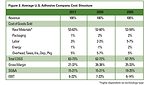 Margin outlook is stable and “good.” The cost structure for U.S. adhesive companies became slightly less favorable in 2011 relative to 2009. Within adhesives, raw material costs were 58% of sales, up from 56% in 2009, and gross margin of 32% is down a point. In 2012, adhesives and sealants sales are expected to be up 9% (5% by volume and 4% by price), supported by raw pass-through, but prices could lag raw materials, resulting in slight margin contraction.