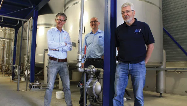 Gerrit Klaassen (left), commercial director of Holland Air Pumps, recommended the pumps to Henk Blom (far right), SABA Dinxperlo B.V.’s manager of technical service.