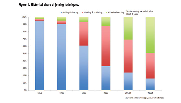 Modern adhesives and sealants will be key enablers for achieving goals of global sustainability through advances in polymer science and technologies, breakthroughs in hybrid and multi-component formulations, and new equipment and curing techniques. Just as the 20th century was transformed by welding, and the 19th century was dominated by riveting and bolting, so too will the 21st century be characterized by advances and above-GDP growth attributable to adhesive bonding.