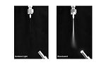 Figure 5. Illuminating the spray plume with bright white light reveals a uniform distribution of micronized particles.