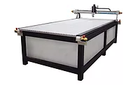 Another design feature is the T-Slot table base plate. Twenty-five full-length slots provide ample fixturing possibilities for most applications. Under this table surface, the actual machine base is fabricated from steel tubing, and then is ground to a specified flatness.