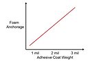 While ensuring that the chosen adhesive bonds to the substrate (wood, plastic, metal, etc.) and meets all CTQ requirements (UV resistance, chemical resistance, etc.) is important, finding an adhesive to sufficiently anchor to the foam is a significant challenge. During the adhesive coating process, widely known and commonly used processing levers can be adjusted to improve adhesive anchorage on foams. First, the surface energy of the foam should be evaluated and can be modified via corona treatment if a higher surface energy is required. In addition, the adhesive coat weight should be optimized. In many cases, increasing the adhesive coat weight can improve the anchorage of the adhesive to the foam (see Figure 2). If transfer coating, using a heated or pressurized nip to laminate the adhesive to the foam can also improve anchorage. Finally, the coating method must be evaluated. While transfer coating is most common when working with foams, direct coating of the adhesive onto the foam allows for some adhesive to flow into the foam surface, improving anchorage.